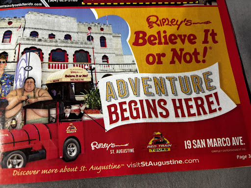 Read moreMy girlfriend was visiting from New Jersey and I also decided itâs time to finally take that step forward and commit to her and no where better make the proposal than St Augustine. I booked the red trolley tour round St. Augustine for both of us leaving around 12 that day. However, we arrived almost a full hour ahead of the scheduled tour leaving from Ripleys museumâs parking lot. Upon arrival we met up with Benji and explained to him that we were a bit early and would like to know if we may begin the tour a bit earlier. Right away my girlfriend and I took an instant liking to him and his friendly and pleasant demeanor. He explained to us to first explore the museum and he would be back in about 45 minutes with his first tour that was about to leave and we would join him for the 12 o clock tour. His advice proved very successful and worthwhile as during that time I proposed to my girlfriend at the treehouse and she said âyesâđĽ°and we began our tour of the museum. We were able to begin with the bottom and second floor exploration just before we left to do our 12 o clock tour with Benji. Benji from the start our tour proved to be a very knowledgeable and experienced tour guide who knew how to also keep his passengers entertained. His knowledge about the city and certain places was quite remarkable and he put it across in a way no one was bored. I mentioned to him before the tour also about the oak tree that I had heard about that once you kissed your true love you was guaranteed a lifelong relationship with that person. Benji made sure to notify me and even stopped for a few minutes by the tree so I may see whether or not the saying was true with my girlfriend. He even added some humor to the situation and gave everyone a pleasant laugh đ. We were done with our tour in just over an hour but had gained a lot knowledge about St. Augustine and both its past and present history thanks to our tour guide. We then finished our tour of the awesome Ripleys museum and afterwards visited the awesome gift shop. I would definitely be returning soon to St. Augustine as thereâs so much to see and do here and I definitely would recommend doing this tour with Benji should anyone be interested in touring and at the same time gain an insight into the history of this remarkable and...