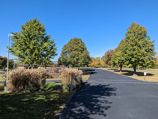 Fox Hill Park's main entrance is at 3400 Kister Dr. The small parking lot is close to the playground, picnic tables, basketball half-court, and men's & women's SEASONAL restrooms. The ball field is just to the north. This park is popular for both walking and dog walking. We enjoy walking the hill for extra exercise.