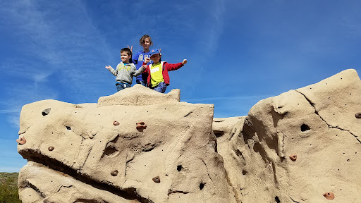 Read moreThis was a fun free activity to try. My sister and I each took our 3 kids ranging in age from 4-11 yrs. It was too hard for little kids. Age 8 or up could scramble their way to the top by climbing up the down climb. The actual climbing holds and bouldering routes seemed to me to be about V1, V2, V3 or harder. So, it was difficult for beginners. I can only currently climb V1 or V2, so it was fun for me. But I couldn't do any overhanging routes which most of them were. Still...a free fun...