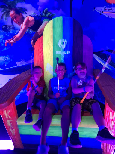Read moreThis place has a nice variety of things to do for all ages. We started out by playing 18 holes of black light mini golf, indoors. It was a little difficult to see because the only lighting was around the perimeter of each hole and I think an overhead blacklight above the podium where you can keep score. Personally I would've liked to see the hole you're aiming for lit up as well. But overall it was a fun experience. Then we took a ride on the virtual reality car. We weren't given an option as to what type of virtual reality setting we could experience so the attendant put us on a roller coaster. It was very intense and should've come with a warning because we all felt like we were going to throw up by the time it was over. The two 12 year old boys with us went a second time and were immersed in a Jurassic Park-like VR. They said they liked it better than the roller coaster. From my perspective it was hilarious watching them as they experienced it. I thought the amount of credits you received for the price was very reasonable when it came time to purchase the cards that let the kids play video games, enter the batting cages, etc. We'll definitely be visiting here again the next time we...