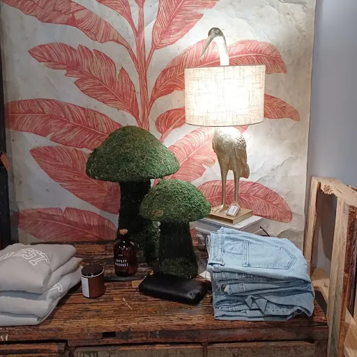 GREAT DECOR FINDS- rugs, vessels, candles, artwork, real feel florals, furniture, kitchen service wares, hand towels, concrete statues, live plants etc. STATIONARY- GIFT GIVING- BEST adult humor cards, cute paperclips, gift wrap, pens, magnets, pretty cards, notepads, trinkets, keychains, letters from mom, jewelry, craft chocolates, etc. CLOTHING- a well curated collection of comfy and cute clothing, great jeans, cute print tee shirts/hoodies, hair accessories. FURNITURE PAINT & CLASSES- I didn't ask, but it does appear that they have a painting class...