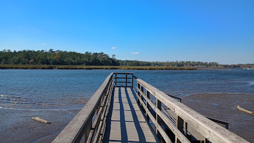 I celebrated my son's first birthday here and it was a wonderful place to do it. The scenery is beautiful and there is an amazing playground and swings and benches everywhere. They have an archway right at the top of the hill in front of the water to get really cute pictures there. It's a stunning place and well worth a visit with the kids or a place to celebrate birthdays or even a wedding with the beautiful and huge oaks and again the scenery is beautiful. The tide was out when I took these pictures but normally when it's up to covers those two bottom, big steps. The also allow people to fish for scallops but there is a type of license you need in order to do it. There are informational signs posted everywhere. Oh and the big pavilion does have electricity with the ability to turn on the lights of the building when it starts to get darker and plugs to use for blow up bounce houses or just charging your phone or use the back wall as a screen and plug in a projector and have a movie date there by the water with the family. This place offers you the freedom to get creative and it appeals to every age. Go check it out...