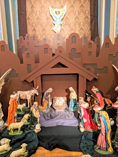 I just love how they decorate the altar around the Holiday Season using several Christmas trees 🎄with colorful lights!