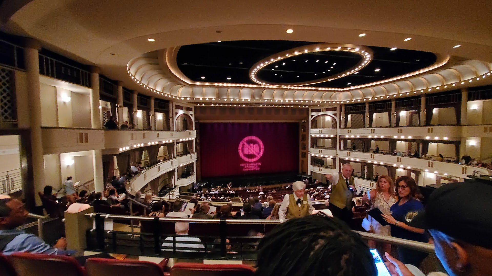 7:30 Shen Yun show was okay, they push their religion. Music and dance starts to feel the same. Start 7:40, 15 minute intermission at 8:45 and end by 10pm. They watch carefully for people taking pictures.