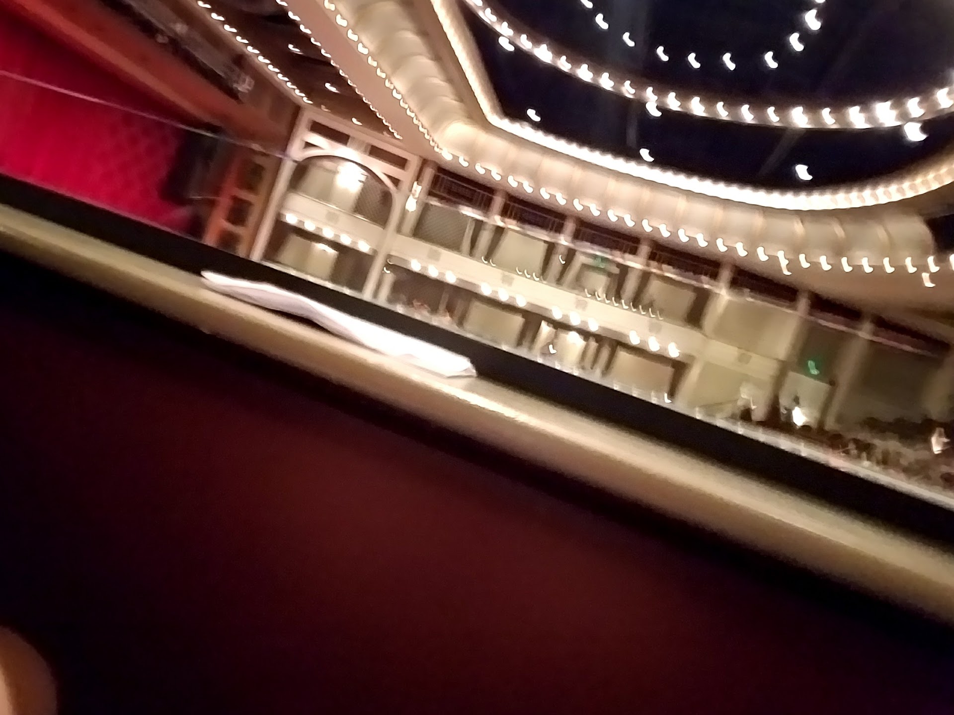 Read moreWhen booking tickets online rest easy knowing there are no pillars or bad seats with any obstructions. Sat in top balcony to get cheaper ticket and was happy with it. Floor seats are very flat and have very long rows of chairs meaning you pay extra to let people past constantly. Side booths get you closer but you sit angled and with partial view of stage. All balcony seats are sloped so you can see over those in front. Not very wide seat but deep enough your knees don't touch seat in front. Helpful attendents.