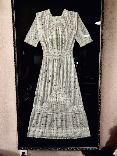 Read moreIt's been a few years since Elsinore Gallery helped me with a project near and dear to my heart. For years, my Grandmother's lace wedding gown lived folded up in a plastic bag in the linen closet. It's just a simple A-line gown, but is all hand-made lace, and was in incredible condition all things considered. (Perspective: her daughter, my Mom, passed away two years ago at the age of 97, so this gown is incredibly old!) Elsinore's owner and his wife helped me pick out a suede-cloth backing, a custom frame, and his wife arranged and hand-tacked the gown to the suede-cloth. The gown was then assembled in a shallow shadow-box assembly with museum glass, etc., and now proudly resides on the wall in my living room. (Sadly, I don't have any photos of Grandma wearing it, but I've included a photo here of her around the time of that marriage in 1900.) It's beautiful and I'm so very grateful for the help of the Elsinore...