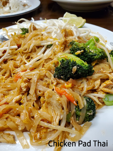 The portions were large, and the entrees were tasty. I had pad Thai with chicken and it was good. I asked for medium heat and I consider the heat less than mild....I noticed nothing in the way of spice. It is hard to judge what to ask for at a place for the first time. My husband had sweet and sour chicken. The chicken pieces were huge! See the photo to verify. The bowl is huge, like a very large dinner plate. The chicken was crispy and really covered in sauce, if that is your thing. For him, it was a it much toward the end.