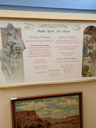 The owners are knowledgeable, artistic and creative. Thus far I've worked with them framing a diploma, glass award, and multi-picture pieces. Their expertise & quality of work has produced beautiful pieces for my office and home or gifts for loved ones. They also have parking spots next to...