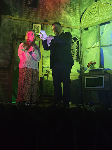 Read moreIt wasn't terrible but it wasn't great. It lasts about an hour and 15 minutes but probably could've been a really good show if it was 45-60 min. What I mean is, he's not great at storytelling and sometimes the flow felt very off. It felt like he was trying to expand the timing with the talking. He needs to be a little punchier and more captivating when he's talking. The room absorbs sound so much so even in the 4th row, it was very hard to hear. A better sound system is needed. You could tell he couldn't hear the audience when participants talked because he would sort of feign a response and start replying back before they were finished talking haha. If the show is dependent on audience participation, I think you've got to have someone with a microphone going over to them. It's definitely not haunted and none of it is even remotely scary (which I preferred, but the title of the show is therefore odd). The stage decorations just didn't match any vibe of the show, nor did the music that was playing. It felt very disconnected. You'll sit in what seems like wooden kitchen chairs. They aren't terrible but after an hour you'll feel it. The actual "tricks" and illusions he does are very entertaining. We enjoyed the actual things he did. But the energy was so low in the room because you couldn't hear well in the audience and the narration needs much more improvement. It was a nice break to take during a busy day in Salem but I think going...