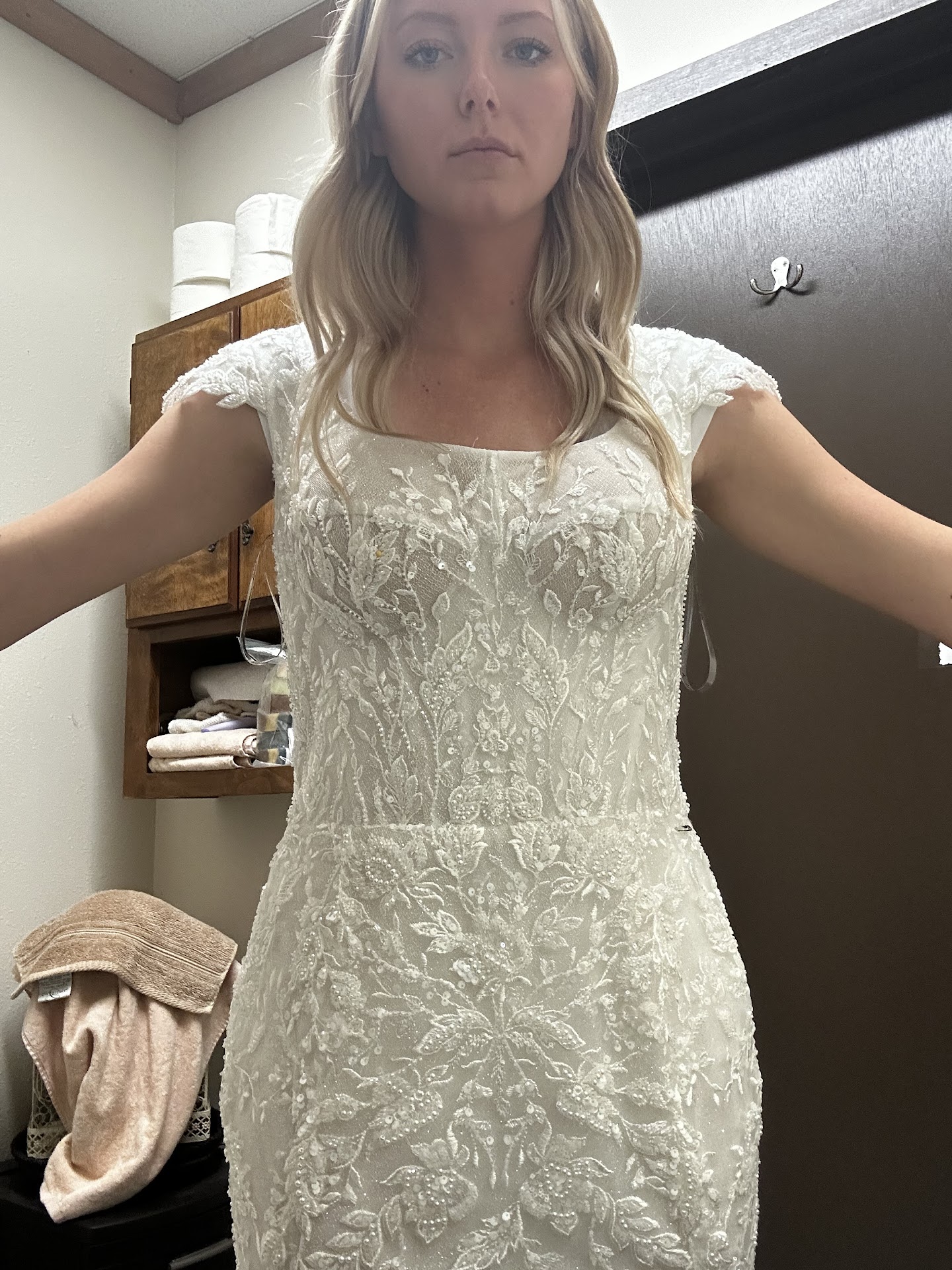 Unfortunately no matter how much I wish this was true, those promises were not kept by Altamoda. My dress I got my dress 2 weeks before my wedding and when I got it was 6 sizes too big for me. Mind you I range from sizes 4-6. This dress came in, in size 12. I was hopeful to get it altered and to make it work because it truly is a beautiful dress, but after taking it to The only tailor that could work with my time line. She said that my dress needed to be completely torn apart and reconstructed to fit me. At this point I was hopeless. What was I supposed to do? Buy another dress? And forget about this $5,000 purchase I just made??? I was beyond furious. After reaching out to Altamoda bridal staff, they told me there was nothing they could do and that I needed to figure it out, they informed me that the dress had no issues, I felt very manipulated amd gaslit. They then said they were not willing to refund me the money. And they would not even help with the cost of tailoring, which cost me another $2,500. And the dress still did not fit me perfectly. It was very sad. On my wedding day I was bawling and trying to compose myself 15 mins before getting sealed to my husband. I was so embarrassed that my dress looked to botched on me. And I was ashamed to show him this dress that was supposed to be so perfect and pretty. Obviously the day went on and I had so much fun with my new husband and our family and I totally forgot about the dress. I eventually came to terms with the fact that it wasn't perfect and that was okay. Until I got our wedding photos...