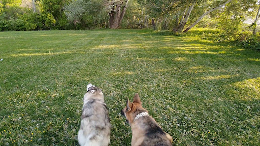 First time here, and it was amazing. It is a huge area with grass, mountain side trails, trees, and a dog water fountain. It has a huge area for the dogs to run and chase each other, so they tired themselves out. So I thought until they found a small creek to run through and chase each other in. The battle was on they would stand on the bank and jump on each other as they crossed back and forth. The dog water fountain was awesome. My german shepherd figured out the button that was supposed to be pushed by a person. He was impatient and would jump up and activate the large button with his feet. He looked over as it filled a little trough for the dogs to...