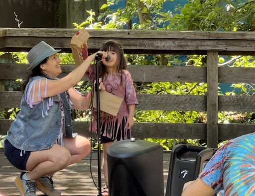 I picked my child up thrilled and empowered every day after camp! We have only been residents of Marin for a couple of years and my daughter still goes to school in the city, so this is her only chance to hobnob with kids who live here. She is very shy but eager to express herself, so this has been an ideal activity for her to be involved in. Because she doesn't know anyone, she is always a little nervous at first but comes home brimming with stories about her new friends and how much she enjoys learning from and laughing with the teachers. She sings the songs and practices her lines daily and hopes to one day have her very own solo line! She is definitely growing in confidence and clearly proud of herself....