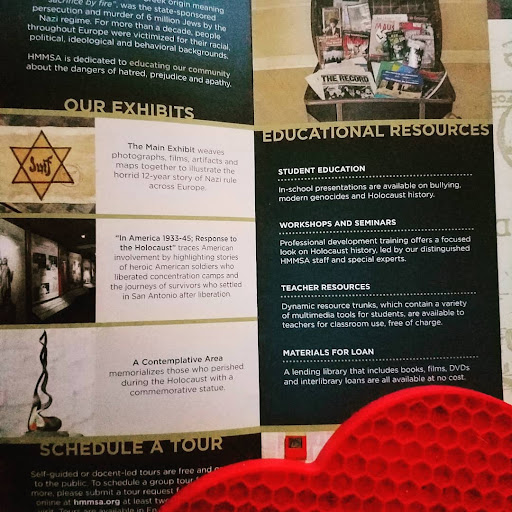 Read moreOur first visit to Holocaust Memorial Museum. We spent time in reverence, prayers, reading all we could that captioned the many pictures and artifacts, and speaking with staff. Our hearts were forever reminded to never forget. The museum consists of two rooms plus additional displays in hallway and balcony. Open Sun through Fri, Closed Saturday. Free. By Donations. Thank you for your support. The museum is on 2nd floor of Barshop Jewish Community Center of San Antonio. At reception desk you can ask for directions. Staircase leads to 2nd floor, or can ask to use elevator. Receptionist will buzz you in, and enter "U" to go to 2nd floor. There is parking around this large facility and active ball...