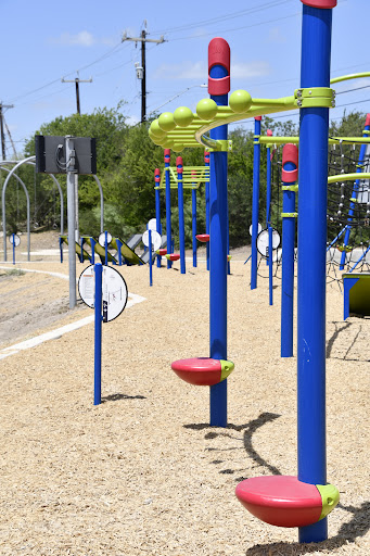 The adventure course is so cool! Great place to workout or train for spartan races (or the like). The equiptment is like a playground/obstacle course for adults (recommended age is 13+). There is little shade so keep that in mind. The hills nearby could add to the workout well and at the top the view of the airport and SA is pretty nice. There are picnic tables and shade structures at the top of the hills. The splash pad nearby is...