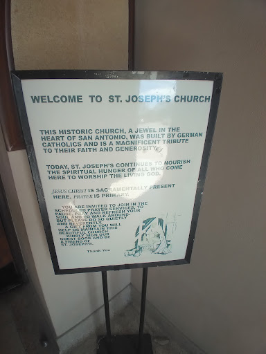 Read moreBeautiful oasis of silence in an otherwise sketchy part of San Antonio. Went for Adoration and Reconciliation. Reminded me of my childhood church. High Gothic design, but very small and intimate. Don't be put off by the scaffolding outside due to renovations/repairs. The interior is contemplative and holy. Adoration and Reconciliation is daily Mon to Sat (as of this writing on 4/1/24) -- MANY, MANY other churches should take a page out of St. Joseph's book and...