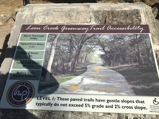 Read moreBeautiful trail way, the trail circles aound the city unto leon creek and salado creek trails, amongst others. The views are amazing along the creek, especially after a flood and/or rain. Only Down side , they are controlled flood creeks. Around utsa / 1604 and other spots , the trail is not passable after flood. I still forge the creeks if the water isnt too high. Not...