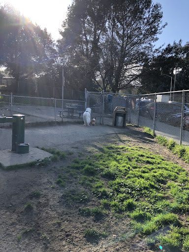 Cons: people open the middle gate so the dogs have access to either side of the park at any time even when they know their dog is aggressive. People feed your dog without asking (my dog has a severe overtime and can't break down hard foods so that matters to me..& I met a dog with a chicken allergy!). Someone's dog came and snatched a burger right out of my hand on the table, super fast. Owner apologize but never offered to like get me new lunch haha. Another dog came and snatched my closed bag off the table.