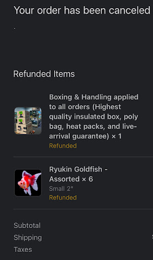 Read moreHorrible experience with this business. Highly recommend purchasing elsewhere!!! Made a purchase and attached special instructions as site allows. No response or acknowledgment from business. Please know my purchase was almost $500. Tried to follow up again and get an idea of when to expect fulfillment and delivery. No response. Finally got notification that order was shipping. Pleco which is still showing on website not included in order and no explanation why. Again tried to reach out because not only was pleco missing but order started as overnight shipping suddenly became 2 day. Wanted confirmation that fish would be okay. Someone responded that pleco wasn't available anymore, in regards to fish... alive arrival guarantee from Route. Individual stated that if any dead fish can either get refund or replacement, no problem. Shipment finally arrived and fish were okay condition. 2 black skirt tetras deceased in bag. Ordered 6 but only five total in bag. Green Tiger barbs, only 8 of 10 arrived. Acclimated fish to tank that have had cycling for many weeks and all parameters good. Third black skirt tetra looked bad in bag and quickly declined over the next 2 hours and died. One of the four gourami's also acting weird prior to adding to tank listing continued after release and died overnight. Remaining fish all seem to be doing fine at this point. Tried to reach out to AFD MULTIPLE TIMES regard the missing and dead fish. Filed a claim through Route, but they will only cover the dead fish not the missing. In addition, they wouldn't process claim because I wanted fish replacement, they said that they would have to reach out to seller because shipping cost more than the fish. At this point I have been emailing AFD since Friday afternoon as soon as fish arrived and have gotten NO response. I've called the store directly 3 or 4 times now and NO ONE has called back. I changed to refund through Route which has been taken care of. I still am owed refund from AFD for the 3 fish they NEVER sent me but still charged me for. In addition, I have been trying to cancel my order of a replacement Pleco which also is paid for already but not processed or shipped. Absolutely no response from anyone there. This has been the WORST experience and I cannot tell you how unprofessional this establishment is. Nothing but a headache from start to finish! The lack of communication and care regarding customers is pretty SHADY...