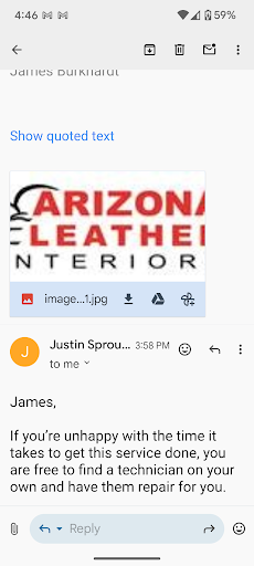 More than a month since my original request, no repairs scheduled and no follow up from anyone unless I keep asking and all I've gotten is the run around, until Justin finally sends an email today (1/10/25) saying "If you’re unhappy with the time it takes to get this service done, you are free to find a technician on your own and have them repair for you."
