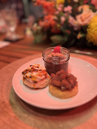 Our night started with steak frites, shrimp skewers, and the best cocktails / mocktails! We then sat down for the rest of our 7 course meal (shown in the photos) and it was delightful. Our team was ranting about how good everything was and HOW MUCH food there was. Isabela came out and described each course, making special note to be transparent about ingredients to set those of us with restrictions at ease. I have never felt so confident about a meal I didn't cook myself, which meant so much to me! What Isabela did for me / our team was more than just make delicious food - it was ensuring everyone felt equally included.