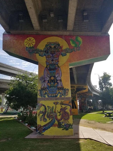 Read moreThis is basically like a central square of the Logan Heights neighborhood that gains its attraction from the fancy spray painted freeway pillars the area is under. The Art was done by some LA artists that came over one day to work on this project. The messages conveyed in the art are good food for thought and are supposed to reflect the local people. See my pic.