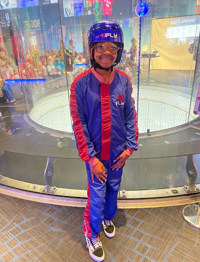 After our meeting, we were brought by an indoor skydiving instructor into a small room with a large television. We watched a video on how to safely and properly skydive indoors. The instructor came in to give us a few more instructions and then they suited us up. Let me share that I was very impressed with the courtesy and professionalism of the instructor. He used humor to keep us captivated and did a great job.