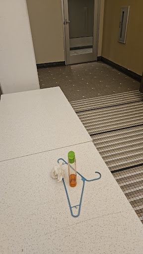 The bathroom and showers are clean, as well as locker room. All spaces are large and comfortable. A lot of mirror space and sinks in the locker room, also a weight. Through the men's room, you can access the pool and hot tub area. There's also gender-neutral restrooms which is nice add-on