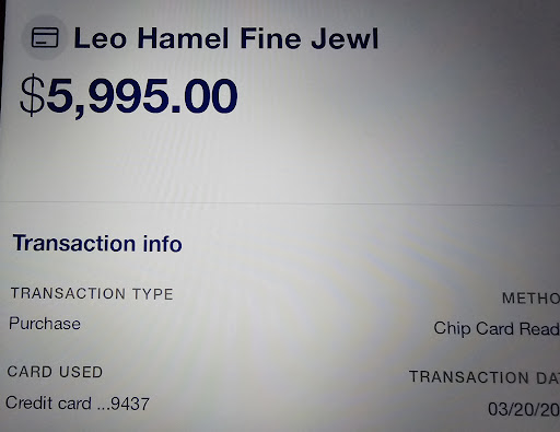 Read moreLeo Hamel is top notch in my book! A friend referred me here and they didn’t say much other than they had great customer service, what an understatement!! I arrived a day and a half before I was getting on a plane headed for Greece and needed an engagement ring. I had it in my head that it probably wasn’t possible, as to not get my hopes up. Then I was greeted by Teri, she was the director of sales for Leo Hamel’s for the past 20+ yrs. Teri was really friendly, easy to talk to, listened to what I wanted and read what I needed. She then proceeded to go above and beyond in walking me through this process of the purchase. I was looking for something in the 1.5-carat range but I wanted it to be sparkly! And gorgeous!, as we all do! What she ended up getting me was a 2.27 for the price range of the 1.5 that was Absolutely Beautiful! Now we had to pick out a setting, what a task! For those of you who don’t know, this can take hours, and after looking at settings for about an hour, she suggested that we put it in a standard setting. Then she says, when you get back from your trip, bring your fiancée in and she can pick out her own setting, Awesome! Done deal! Now I just had to tell her I needed it within 24hrs. I couldn’t believe my ears when she said no problem, sure enough the next day my ring was ready. There’s more! Fast forward a month later, we come in to exchange and upgrade to a nicer setting, again a long process (setting shopping) my fiancée cant find anything she likes except for a setting that is already set with a smaller diamond in it. Teri says she’ll reach out to the vendor to see if they can send this setting to them. A week goes by and Teri calls, she says well…. The vendor won’t sell just the setting alone, however he will sell us a better, slightly bigger diamond and then i will exchange it for you for the same cost of what you already paid. WOW! The old diamond was absolutely beautiful, but the new diamond was all that! as well Sparkly and Gorgeous!!
