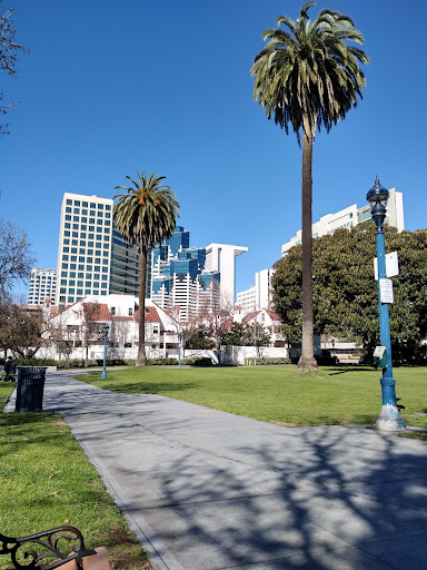 Pantoja Park is a charming oasis in downtown San Diego, around the corner from the state superior and federal courts, which provides a pleasant respite from the concrete.