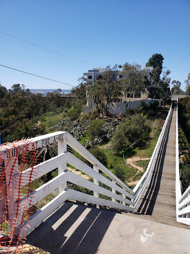 Very busy place on weekend! People stopping to take photos. So times just stopping car, double parked to get photo. Here would be great revenue $tream for unfortunate unhoused & homeless! @SDcotycouncil !!? It is illegal to double park rather than walk a block right?? Few people take Maple Canyon path to Arroyo Dr/Canyon to Spice St. pedestrian Suspension Bridge, another over Century bridge&canyon!! There are over 15 mi.s of canyon trails here and in Balboa Park.(just 1/2 mi....