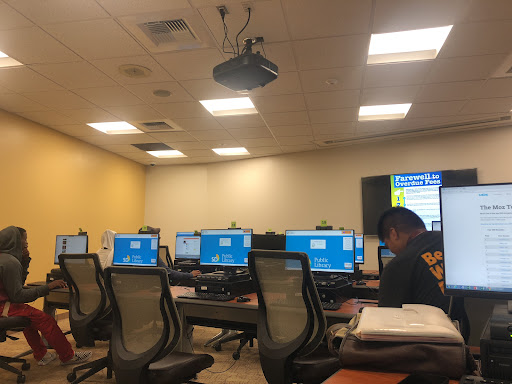 P.S: Ask for a library cards if you’re new you get access to the computer lab for two hours everyday, and it allows you to print (.20 cents per copy) you also cant check out anything without it...