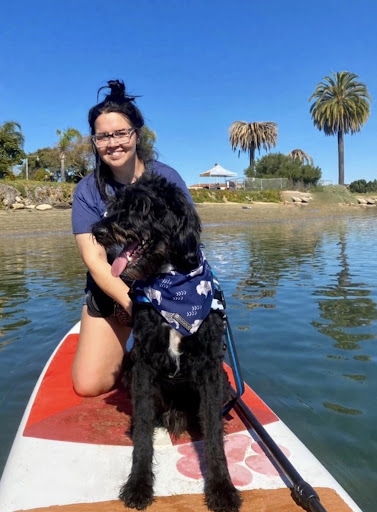 My dog LOVED it!!!! She was so happy the entire time! She loved switching boards but loved to be near me so took an extra swim to get to me a second time, but this time she fell in. She had so much confidence and so did I the second time around. I think a part of it came from us asking if Jack (Samâs dog) could come because she loves other dogs and I thought sheâd learn by watching him (she did).