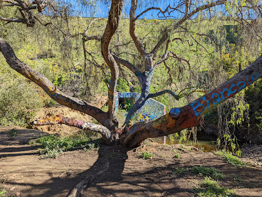 Read moreWhile the parking can be challenging, the biggest issue was actually finding an entrance to this place. We just entered from the roadside following a small path that was created by others. The first and the most interesting portion of this canyon is the tunnel covered in graffiti. It is pitch black inside, and the low ceiling makes it hard to walk but if you keep walking towards the light at the end of the tunnel you end up on the other side of the road. My other gripe is the lack of markings. It is easy to end up in someone's backyard. Also part of the canyon is just a path for water (i.e. big pebbles) which makes it hard to walk. Hearing the birds chirping everywhere is nice, even if we cannot observe them. Overall a nice little outing with a little art...