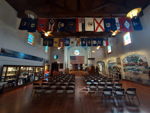The museum itself is housed in a former Navy chapel. The stunning stained glass windows still remain and each one has a story to tell. Although the Navy paid for the building, it wouldn't pay for artwork. The money for each window was raised by groups of small donors from across the country. See if you can guess who sponsored each window (and check you answers on the bronze plaque beside the entrance).