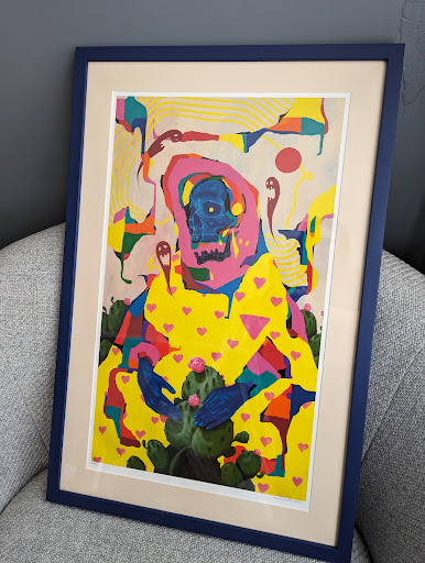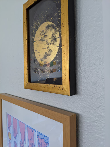 Finally hung up my frames in my house thanks to Lisa's incredible work!! Lisa had great communication and was very easy to email what I needed and collaborate that way. I emailed what kind of mat/frame colors I was looking for each piece and was open to Lisa's creative direction and what was available for materials. She quickly gave me cost estimates and different options for some of the pieces. I was super happy with the final! I love love the gold, teal, natural wood, white, and black frames she did for 10 of my pieces I needed and they all turned out exceptional. Im glad they have a super nice backing and little footers to make it easy to nail in picture hangers.