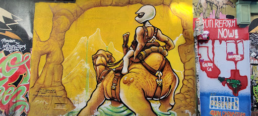This is really the Clarion Alley Street Art collection which focuses on large pieces of street art which rotate regularly depicting & expressing topical, local issues onto the otherwise exposed walls.