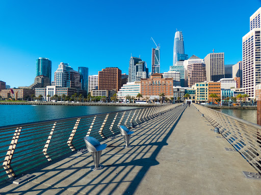 Read morePier 14 è uno dei pontili piĂš affascinanti di San Francisco, situato lungo lâEmbarcadero, vicino al Ferry Building. Questo pontile pedonale offre una vista spettacolare sulla baia di San Francisco, abbracciando due icone della cittĂ : il Bay Bridge e il Ferry Building. L'elegante ponte a doppia campata si staglia allâorizzonte, soprattutto al tramonto, quando le luci del ponte si accendono e creano unâatmosfera magica. La moderna illuminazione artistica del Bay Bridge, progettata da Leo Villareal, aggiunge un tocco unico nelle ore serali. La sua torre dell'orologio, simbolo storico della cittĂ , si trova a breve distanza ed è visibile dal pontile in tutta la sua maestositĂ .