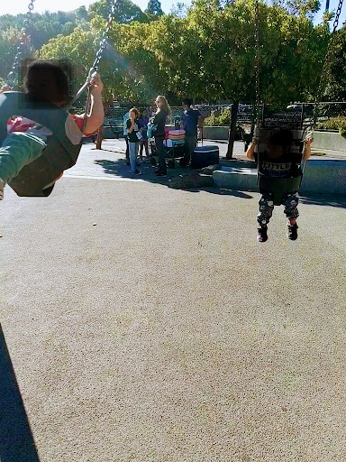 Had to take my hubby to Kaiser a few blocks away and didn't want to torture my 2 yr old by making him wait in the car for possibly up to an hour. For being in a somewhat "rough" area this is a really nice and a lot of thought clearly went into this playground! I only say that because it is in the heart of the Fillmore and while the entire playground is gated, there were still some sketchy characters on the Geary side of the park where it seems a couple people are living out of their cars and also on the overpass that you HAVE to use to cross Geary on foot. I parked on Geary but noticed there was a TON of parking there which I assume was mostly because of the small homeless population. However I never felt awkward and didn't mind parking where I did because the people living in their cars seemed pretty harmless (no obvious drug/alcohol useage, aggression etc) and I didnt feel the least bit worried mostly because it is a very populated area and for a Sunday afternoon there was a lot of people and kids around. But I did notice that a 30something white guy had called the cops and they appeared to look around the perimeter of the playground (cops greeted kids that yelled hi but no stickers😉) but I'm assuming never found their suspect. Didn't notice anything came of it but a I'm born and raised SFer so I wasn't really alarmed by it as like I said it is the Fillmore. Had to note that because I think some people wouldn't have been as comfortable as I was because like I said I'm born and raised in the city, so none of this is new to me but I'm also a parent now so you do keep a mental note of these things and know when/where you need to be a little extra vigilant. There are 2 structures one for smaller kiddos and toddlers and a bigger slightly more advanced one for bigger kids, and big enough for an Adult to follow a rambunctious daring little one. My 27 month old LOVED this park and while he didn't play much on them, he was fascinated watching older kids (7/8+) climb on the "rock climbing" rope structure..its basically a tightrope between two kid friendly "rocks" and there are a couple of these around the park for kids to play on/in. There are tons of things for kids of all ages to safely do while in the fully...