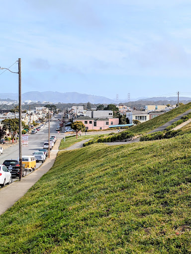 A neighborhood favorite for strolling and jogging. It is a windswept grassy hill that offers a panoramic view of the city: from ocean beach to the Golden Gate Bridge. There are benches embedded into a stony bulkhead that are fantastic for stretches and warm-ups. On the southeast corner at Quintara St and 24th Avenue is a play structure for the kiddos. No bathrooms or water fountains, I'm afraid. Bring a friend (and an extra layer) to this...