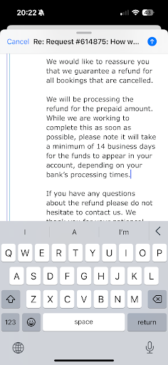 Read moreDue to emergency surgery for a family member, we could not travel and I had to cancel our Wisecars reservation for the period 6/25/23-7/5/23. I first contacted Wisecars on 6/13/23 to request cancellation and a refund. They asked for more details about the reason for cancellation (in principle, this was none of their business...) and offered a credit voucher instead. On 6/14/23, I replied, explaining myself further and saying "No thank you" to the voucher and, again, requesting a full refund. That was the last time I heard from them. I reached out again on 6/22 and 6/23, since I still had not received confirmation of the cancellation. On 6/23 I also called customer support, which kept me on hold for 20 minutes and then transferred me to voicemail. I again left a message, requesting a refund and asking them to contact me to confirm. As of today, I still have not heard back from Wisecars. They also removed my online support ticket, which seems odd because the issue has not been resolved.