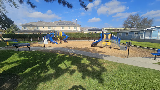 A small little parks tucked away in San Gabriel. With a small parking lot for 8 vehicles, expect them to always be taken by the homeowners nearby or by the staff or parents of the school this Park is attached to. There is a small gazebo with a table and a charcle grill for any summer activities. There are muiple benches where you can sit and watch your kid splay. Another blue table, uncovered but shaded by trees as well. The playground was just remodeled and it very nice. There is also a swing set for toddlers and bigger kids as well. I would give this Park 5 stars if it wasn't for the parking situation and the sanitation area being extremely dirty. You also have constant traffic from the school because there is a gate attached to the back fence. I wish the city would crack down on the vehicles because they are parked there day and night with no activity in the park at all. Parking has signs that it's 2 hours max but not enforced at all. Also no restroom...