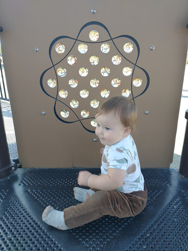 It only have 12 parking spaces for this popular neighborhood park that parents taking their young children to play here on the playground stratuses which included slay, swing sets and some climbing!