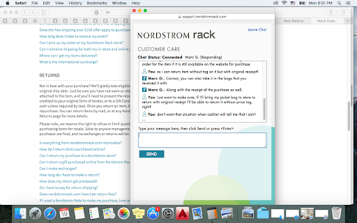 I have always loved this store and Nordstrom rack services in general. Have been a loyal customer for years now. Recently I had a very bad experience in the store. I just went to return something that I had purchased just 2 weeks back. But it started wearing out within 2 days of using. After speaking and confirming with customer care online who was very respectful and sweet, based on the advice I decided to return in store. After explaining to the store manager, the store manager was horrible and absolutely rude, all she could have said is we normally don’t accept such returns, but we will make this one time exception since customer service agent adviced you as such. She went on to add “but we both know you did this. You must have poked it somewhere.” I explained to her throughout that my concern is not that I received the item in such state and I never said so, but the fact that within 2 days of using an item has fallen into such state is concerning. She continued to insult me throughout very loudly even though I was being polite. I went onto even say please give it back I would rather speak to customer service and get this resolved. She did not give my item back, she said We will accept this return, but we both know you did this damage to item. She was also bold enough to whisper into the employees ear and poke fun and laugh at me, when I kept explaining that I am returning this because of the bad quality.
