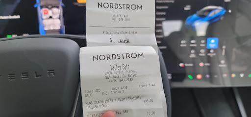 After the holidays we noticed that we hadn't received our notice yet, so my husband decided to go back to the store to follow up on the status of his two suits. The workers at the pickup area just asked for his name and they had him go sit down. Then they told him to wait as they check a different part of the store. During this 30 minute wait, my husband noticed their faulty process. People would arrive at the pickup area, say a name, recieve an item (without showing ID or a reciept), and they would leave. The department manager approaches my husband, checks his reciept, and informs him that both of his suits had been stolen. Apparently this individual was able to steal the tailored suits, take them to an outlet Nordstrom store in Livermore to exchange for gift cards! We were in utter shock that this happened. With the wedding dates getting closer, we got very stressed (this was exactly what we were trying to avoid and why we had bought the suits early on).