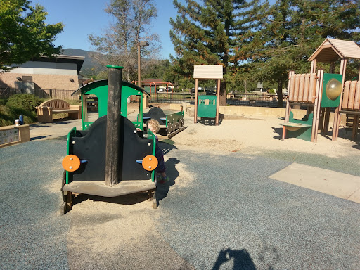 This is a really nice park to take kids. I don't give it 5 stars because I'm finding it harder for older kids (ten and up) to get excited about the same old same old structures you find at most playgrounds (but I find they will still have fun if you can get a group of them. This park has am enclosed playground for the little ones and a bigger playground for the bigger kids. There a public bathroom and water fountains. No water feature but you're right next to the Almaden community center and library if you want to check...