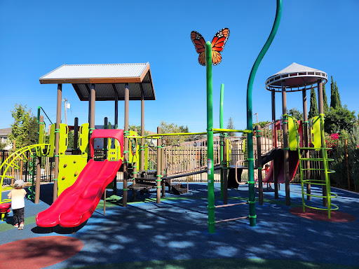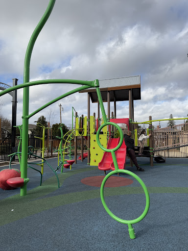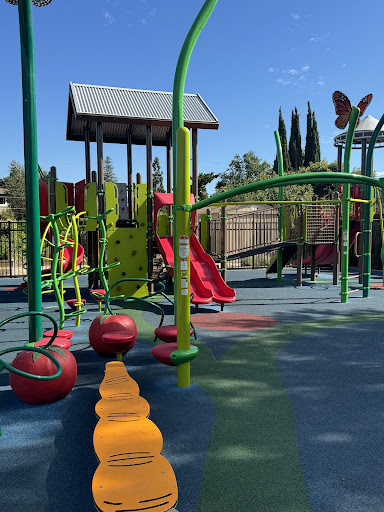 Incredible neighborhood park brand new in April 2024. There are 2 covered picnic areas, one of which is reservable on the San Jose Parks website. Small field, exercise equipment, half basketball court, and a community garden. The playground is wonderfully themed like a garden with adorable details like a general store, games about food, a giant tractor, tomatoes you can climb on, a caterpillar you crawl through, and a carrot balance beam. There's 1 accessible slide in the toddler area and 3 slides (two of which are doubles) on the big-kid structure. Only 2 toddler swings, no big kid swings. Not as many challenging climbing options so overall I'd say this playground is best for a younger crowd, but we see families of ages there. A bit of shade for the sunny days and lots of seating for parents. It gets pretty busy on the weekends and weeknights before dinner time. Very lucky to call this our neighborhood park! We've been waiting for...