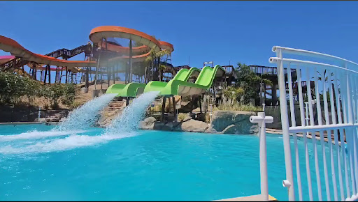 This water park has some very fun slides, many of which take single or double tubes. The park is beautifully located at a county park, with great views to a lake and some grassy hills. The season pass is very affordable (though parking, lockers and food do add up over time).