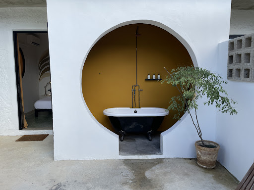 APT had lovely fixtures and the outdoor areas of the building are very thoughtful and zen-like. We loved the greenery and many places to stay and have a seat. The shower was amazing, kitchen lightly stocked with coffee and tea, and just a very cute place to call home for a while.