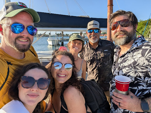 Luis and Gaby started with a quick safety briefing then quickly let us take over as DJ and offered us sangria (which was delicious) and beer. They allowed our group to hang out at the other end of the boat for about an hour uninterrupted. Captain Luis then began telling us about some of the history of Puerto Rico. We had time to swim off the boat, and they took pictures for us. On the way back, Captain Luis and Gaby visited with us , telling us about their lives, asking questions about ours, and providing recommendations for what to do in OSJ and the surrounding area. Drinks were provided the entire time and his wife made us a beautiful charcuterie board. It wasn't small talk, but truly great conversation and laughs!