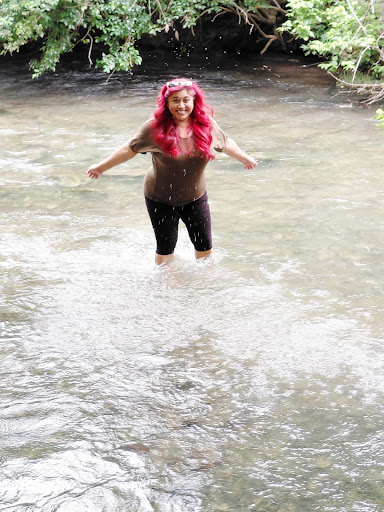 Short little trail that runs along the side of the river closest to the road. At one spot there was a sign on the other side that read "no trespassing". However there were to people posted up underneath it hunting for rocks, I never tried to get over there to that side because it was not as maintained as the park side. Lots of shade trees over the little chill spots that had been established (which were all occupied. So we just hung out travel hammocks in branches that were over hanging the water and dangled my feet in the river. Turned out to be probably the coolest spot in my opinion. Parking had two handicap and maybe 10 regular shmegular spots. I had to find a spot in the apartments...